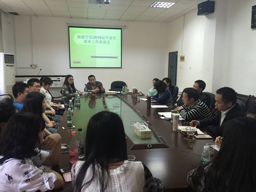 (供稿:毛翠萍 冯佳宁)4月13日下午,旅游学院2016届本科生就业工作座谈会在学院会议室召开。院长王兆峰、院党委书记李正益、酒店管理系主任唐健雄、学工办主任谢胜文等出席会议,会议由院党委副书记廖欢主持。