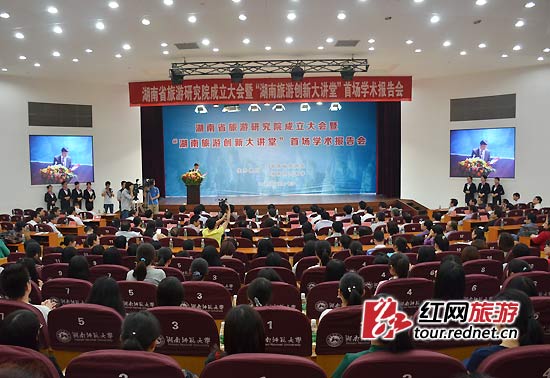 湖南省旅游研究院由省旅游局和湖南师范大学联合组建。成立大会上,省委宣传部副部长、省文化体制改革和文化产业发展办公室主任蒋祖烜为“湖南旅游创新大讲堂”作了“文化与旅游融合发展”的首场学术报告,省旅游局局长张值恒为首批聘请的郑焱、叶文智、马昕、刘建平等21名专家颁发了证书。