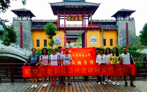 (通讯员李冬杰 陈勤昌)2017年8月11日至15日,我院9名研究生赴新化县大熊山国家森林公园开展为期5天的暑期社会调研。调研活动紧扣“精准扶贫▪振兴发展”主题,通过对贫困户深度访谈和旅游资源就地考察方式,为大熊山旅游产业精准扶贫进行探索。该调研团队由贺小荣副院长担任技术指导,硕士研究生游小艳担任队长。
