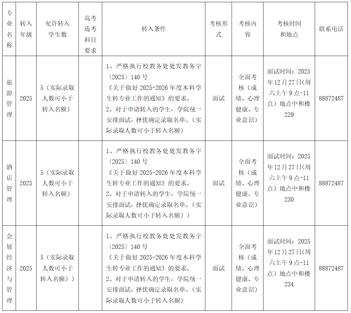 五、旅游学院可接收转入学生的学业及其他背景要求: