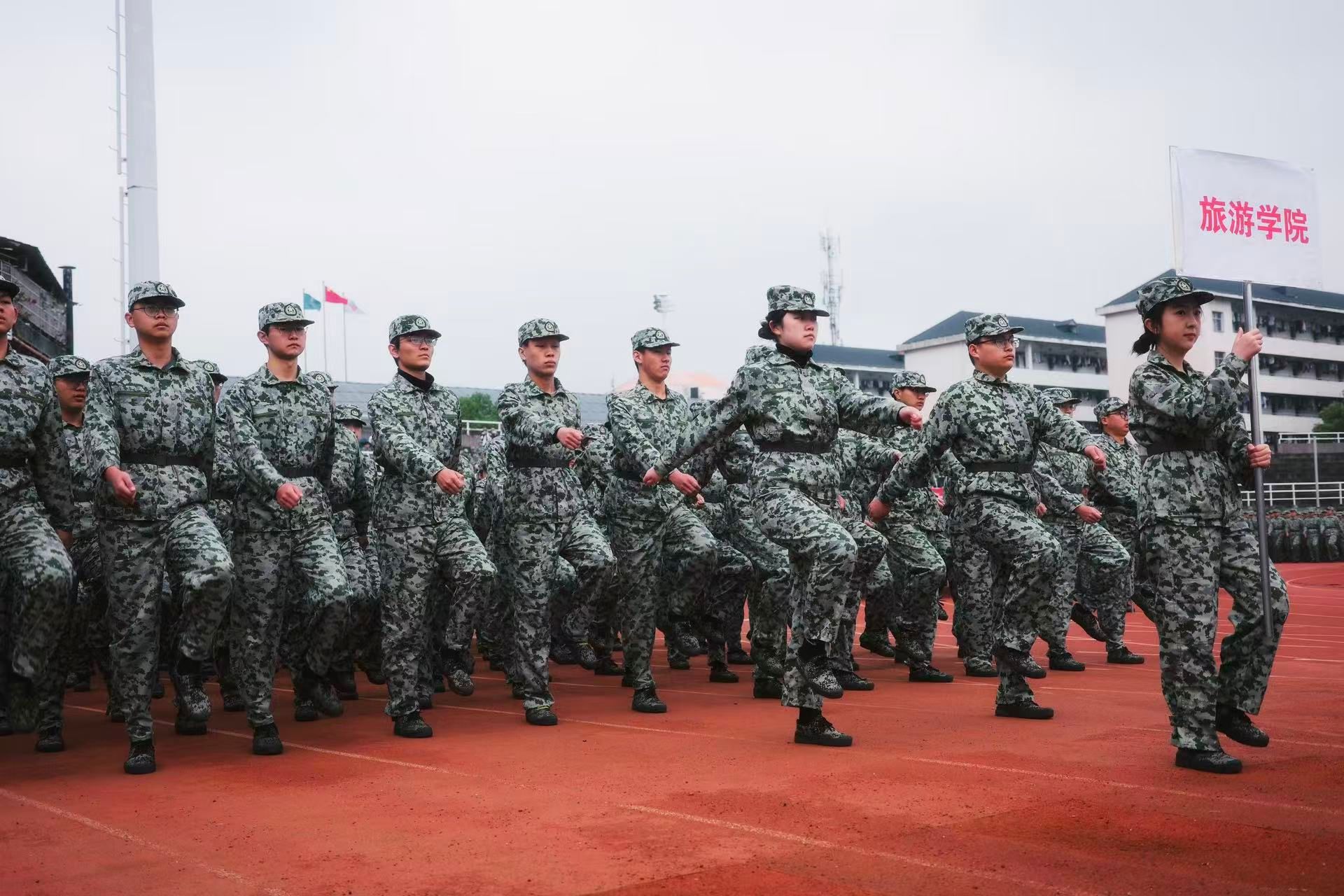 大会在庄严的国歌声中正式开幕,各学院方阵依次进行分列式汇报表演。我院方阵在教官指挥下,高呼“勇登岳麓,劈波湘江;旅游学院,共创辉煌”的口号,以整齐的队列和铿锵的步伐通过主席台,全面展示了为期两周的军事训练成果。在随后的军训特色项目展示中,我院学子参与的警棍警盾表演方队动作精准连贯,展现了严格的训练标准和当代大学生的良好素质。
