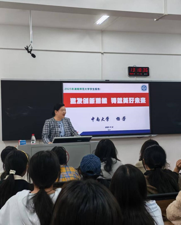 (通讯员 艾远婷)为切实提高我院学生的创新精神、创业意识和创新创业能力,11月13日中午,我院特邀中南大学国家创新创业示范基地主任杨芳教授,以“激发创新潜能,铸就美好未来”为主题,在桃花坪校区实训楼为大一新生带来一场精彩纷呈的创新创业专题讲座。院长王兆峰、院党委副书记(主持党委日常工作)罗明全程旁听,旅游管理系副主任汤静主持讲座。
